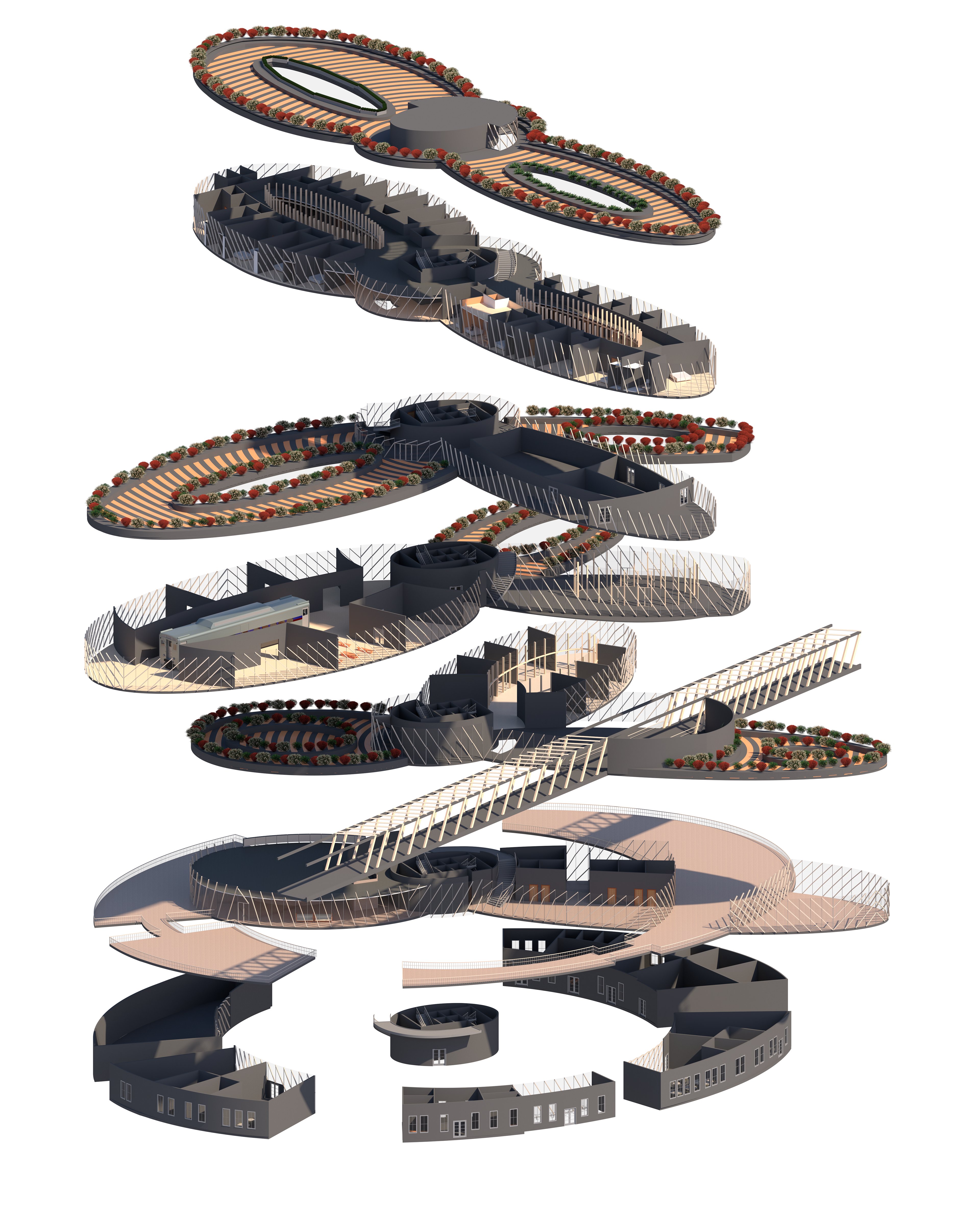 Programs Used: Revit, AutoCAD, Rhinoceros, InDesign, Photoshop, V-Ray